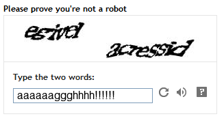 You’ve got to be kidding me!!! What in those genius minds made them think requiring a visually challenged and aging population to place distorted words and pictures into boxes to prove they were not robots!