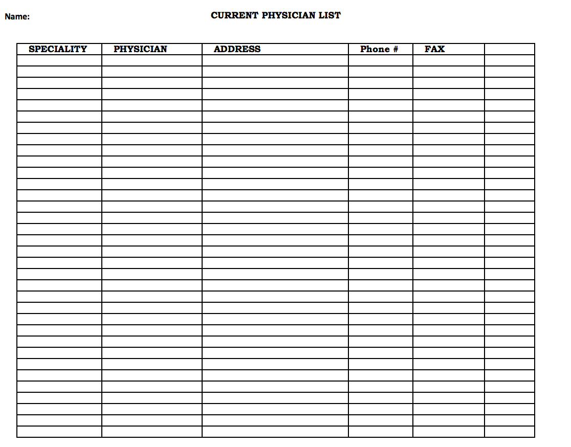 - Make a list of all physicians, include the practice name, address, phone number, and fax number.