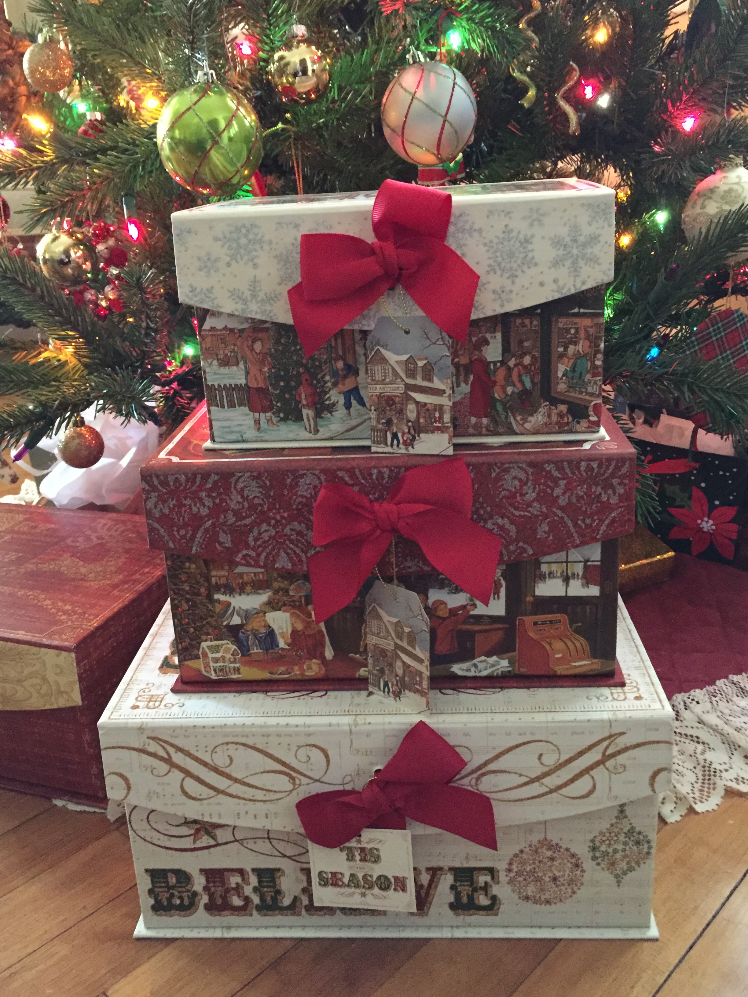 - Think outside of the box. Instead of spending hours wrapping presents, have the store wrap them or do as I did. Buy decorative boxes and gift bags. They are beautiful and take a lot less time.