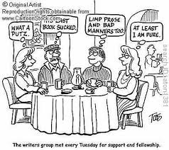 Two articles came to my attention this week on writing and critique groups. Guide to Literary Agents, Chuck Sambuchino, in his article, discusses The Top Ten Worst Types of Critique Partners.  Included among the attendees one might encounter were: The Snob, The Time Hog, The Retro, The Distractor, The Harsh Critic/The NiceyPiecey, The Debater, The Picker, The Sulker, The Boss, and The Sporadic.